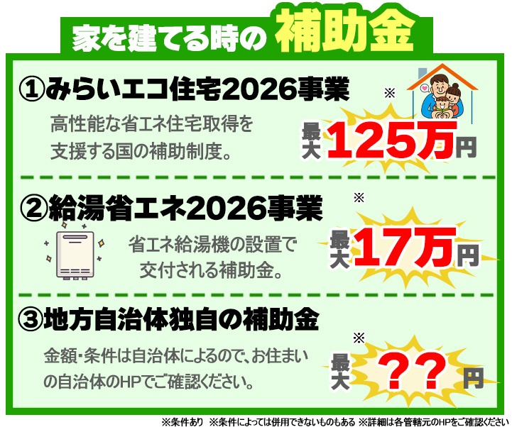 省エネ基準などの条件を満たせば、補助金を使ってお得に家を建てることも可能なんです!